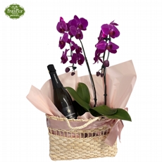 Orquídea Phale Haste Dupla com Espumante na Bolsa de Palha