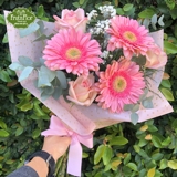 Um arranjo mimo de rosas, flores nobres da época e flores campestres, cheio de charme que traduz grandes sentimentos em um formato gentil. Em tons de rosa é delicado que ilumina qualquer cantinho com doçura.