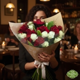 • Presença Majestosa: A combinação das 10 rosas colombianas vermelhas (famosas pelo tamanho e pétalas aveludadas) com as 10 rosas nacionais brancas cria um visual clássico, volumoso e extremamente elegante.