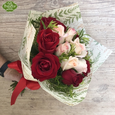 Rosas vermelhas intensas se encontram com rosas suaves criando um buque elegante e cheio de sentimento.