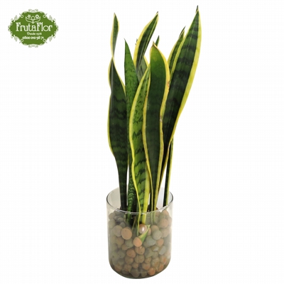 Espada de São Jorge, hidrocultura com pedra de argila expandida, em peça cilindro de vidro.