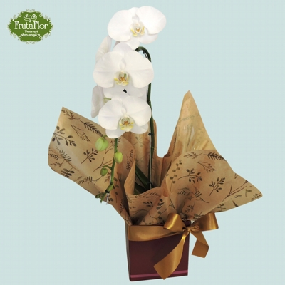 Com flores brancas delicadas dispostas em cascata e altura aproximada de 60 cm, ela é perfeita para decorar ambientes sofisticados ou presentear em ocasiões especiais. Sua beleza duradoura e aparência imponente fazem desta orquídea um símbolo de requinte e bom gosto.