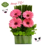 Cuidados Rápidos: Mantenha o arranjo em local fresco e acrescente água no vaso de vidro a cada dois dias para garantir a durabilidade das flores.