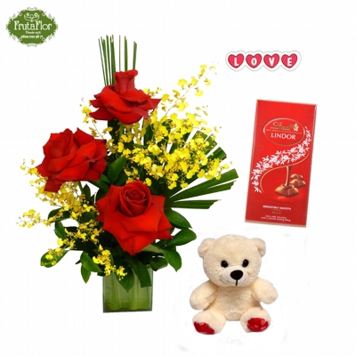 Rosas Colombianas, Ursinho e Chocolate Suíço